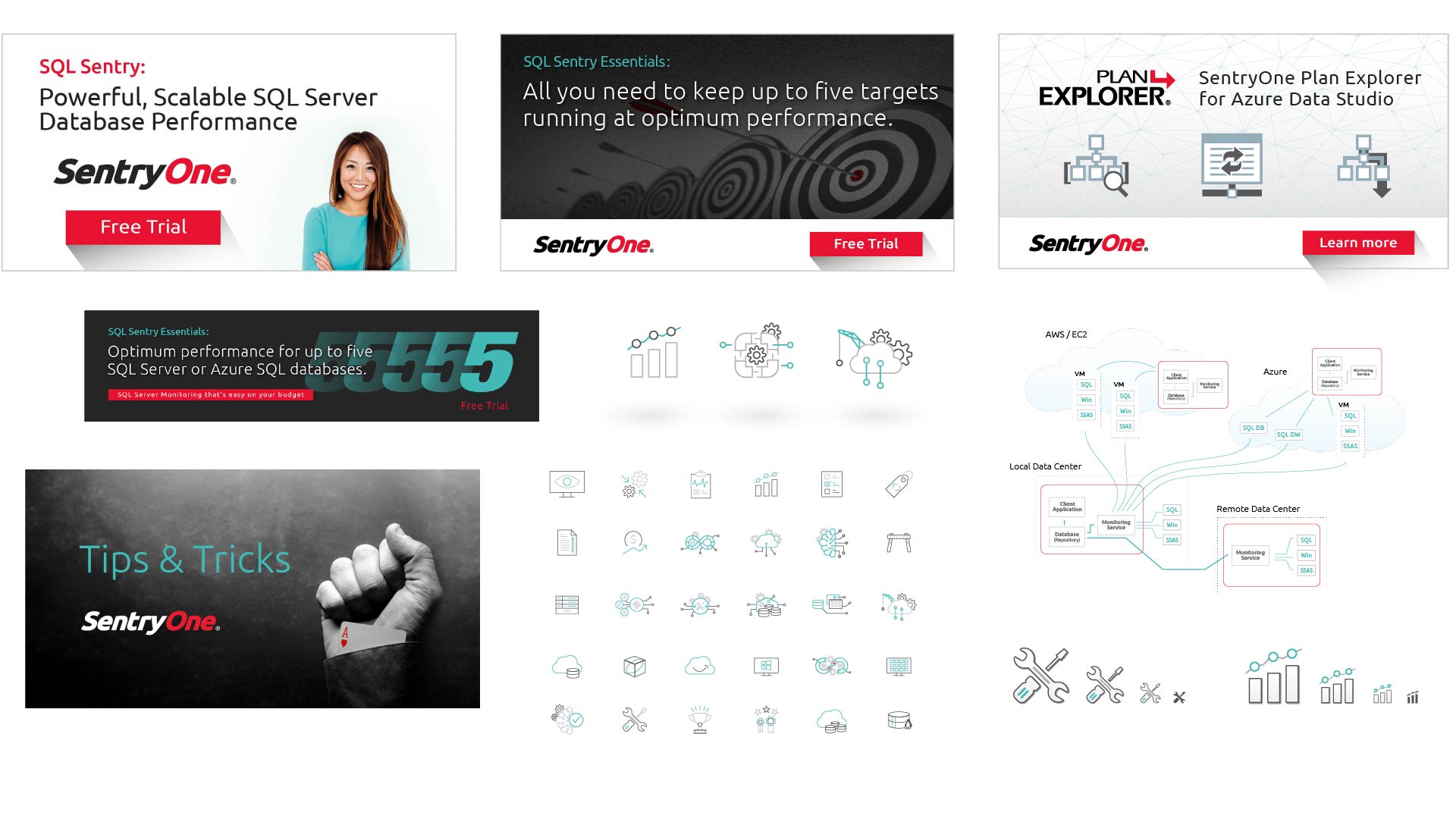 For over 12 years I was the primary designer at SentryOne, a software company, and the Creative Director for five of those years. I helped shape the SentryOne brand—from its earliest user interface design, through a major rename and rebrand, to its award-winning headquarters. I also designed and maintained multiple generations of the website, landing pages, and rich HTML email campaigns, all social media campaigns, presentations and trade show events.